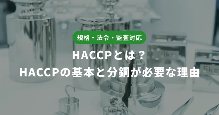 HACCP監査では、衛生管理計画や記録だけでなく、温度計・はかりなどの測定機器についても、管理の根拠を説明できることが求められる場合があります。監査前に、はかりの日常点検用分銅の見直しや、校正の考え方を整理しておくことで、現場での説明もしやすくなります。関連情報もあわせて確認し、自社に合った管理体制を整えていきましょう。